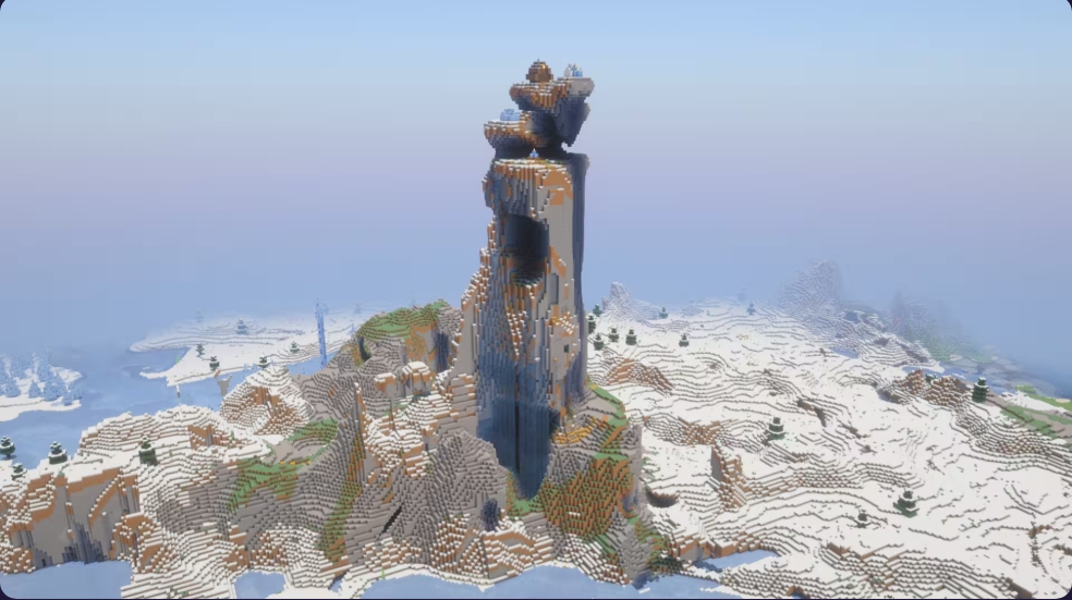 For builders and creators, this seed is a masterpiece. The stone spire is perfect for vertical builds such as elevators, hanging bridges, cliffside bases, or floating expansions around the peak. The snowy environment supports themes like an ice kingdom, sky monastery, or ancient fortress in the clouds. Content creators would also find this seed ideal for cinematic shots and dramatic storytelling.